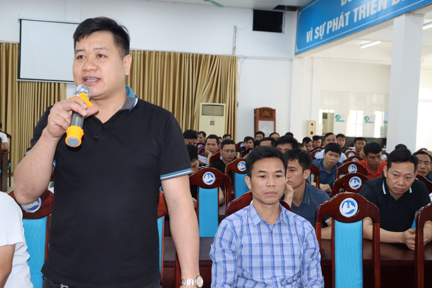 Đ/c Đỗ Văn Hùng – Chủ tịch Công đoàn Công ty phát biểu chỉ đạo và trả lời các ý kiến của ATVSV tại lớp huấn luyện.