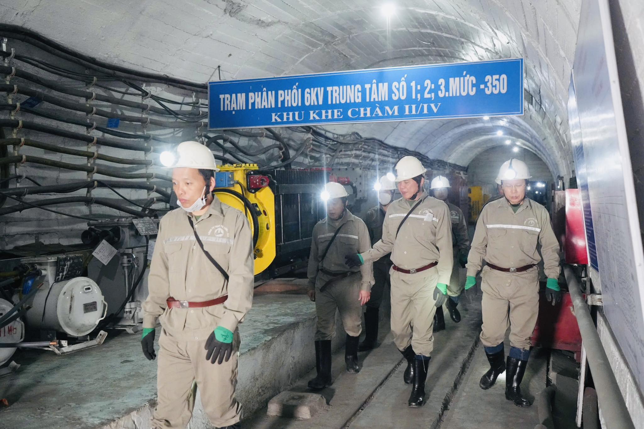 Đoàn công tác đã trực tiếp kiểm tra các hạng mục sân ga; hầm trạm; monoray; tháp giếng phụ, hệ thống trục tải giếng phụ, thiết bị tín hiệu điều khiển và thông tin liên lạc giếng đứng phụ +35/-500 và đặc biệt là kho thuốc nổ tại mức -350 của Dự án mỏ Khe Chàm II – IV.